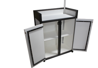 Includes heavy duty casters, Yale nexTouch Lock, laser formed key hooks, 3D signage, UV powder coat, umbrella channel and carbon steel construction